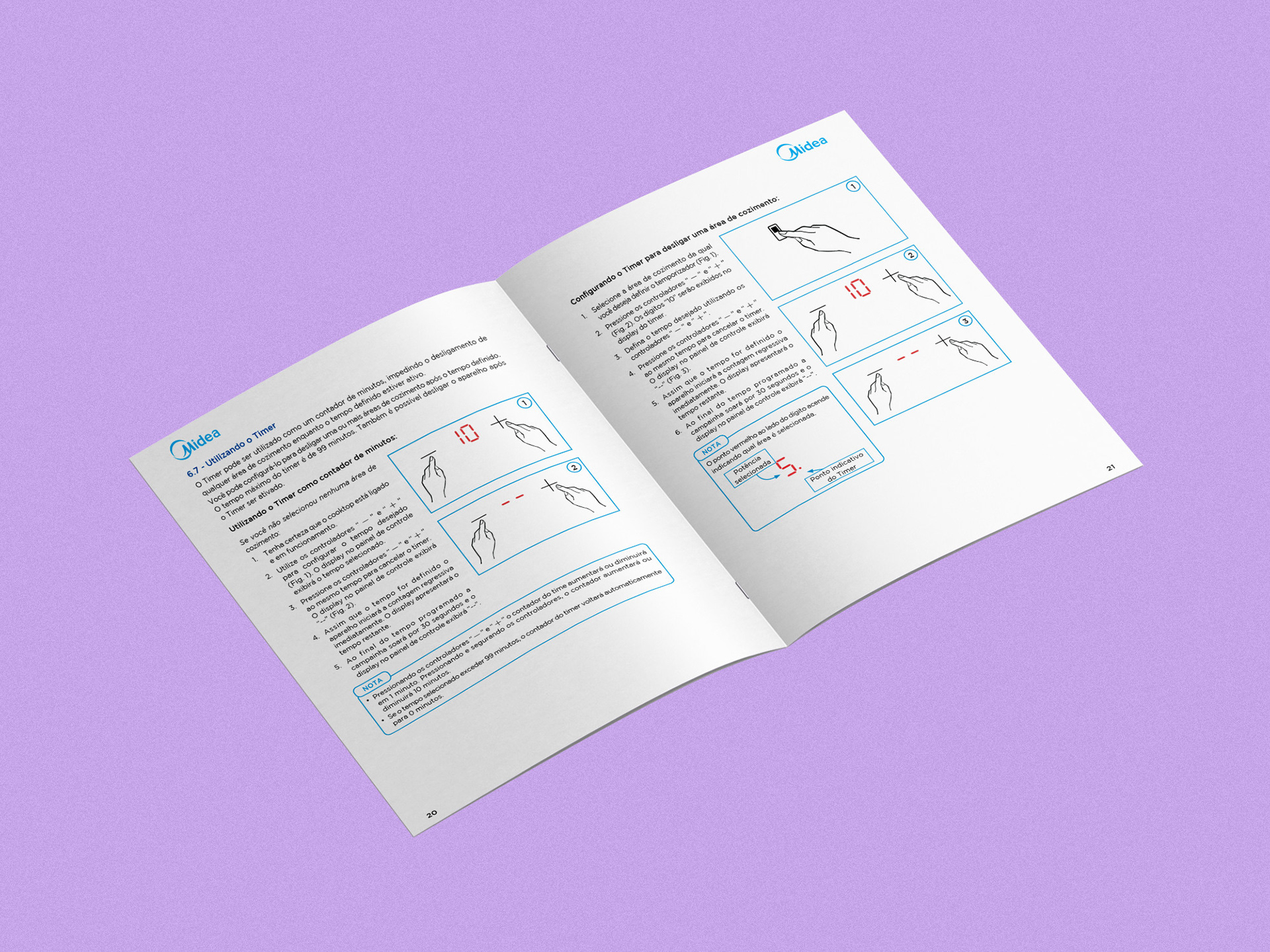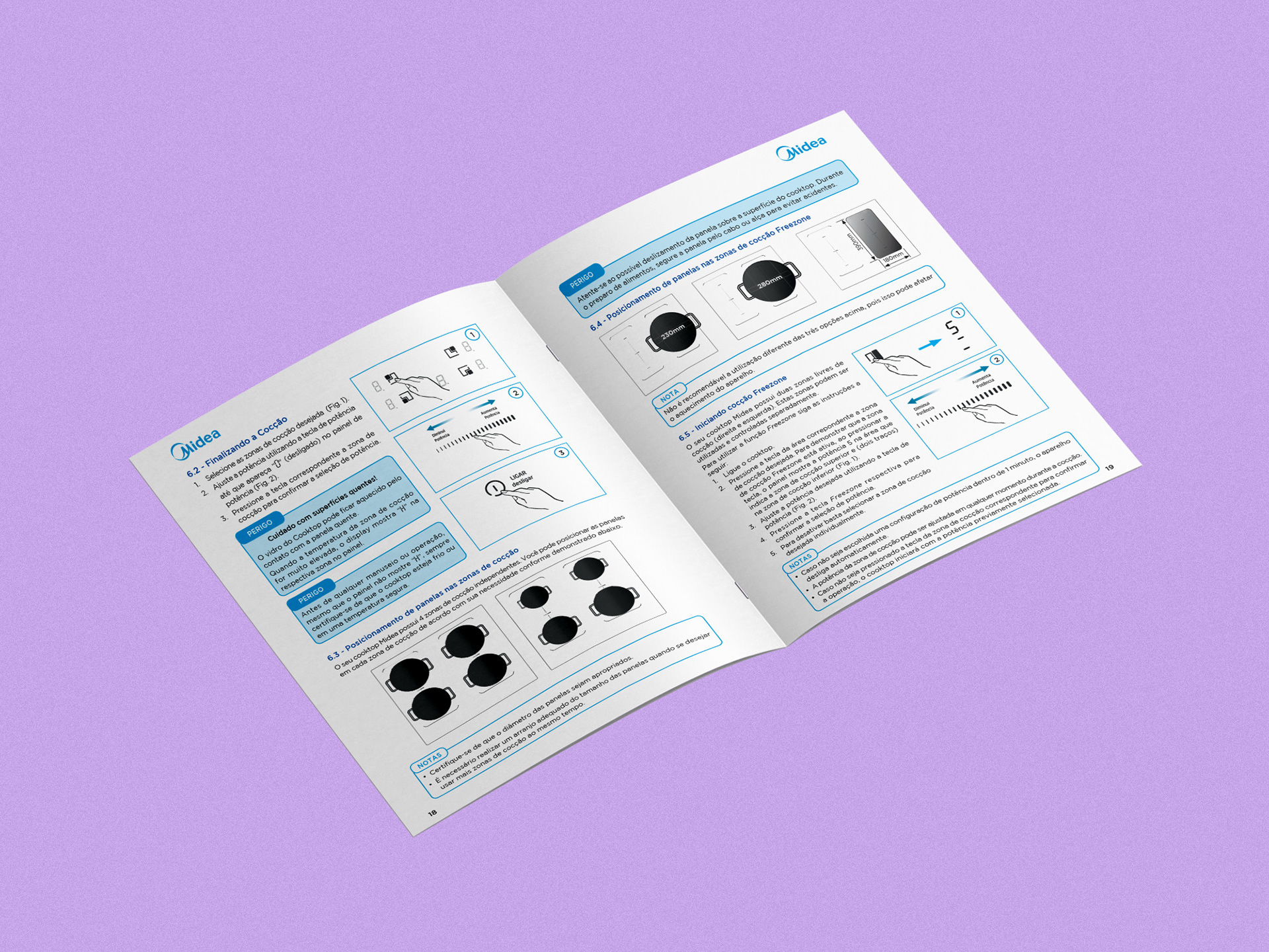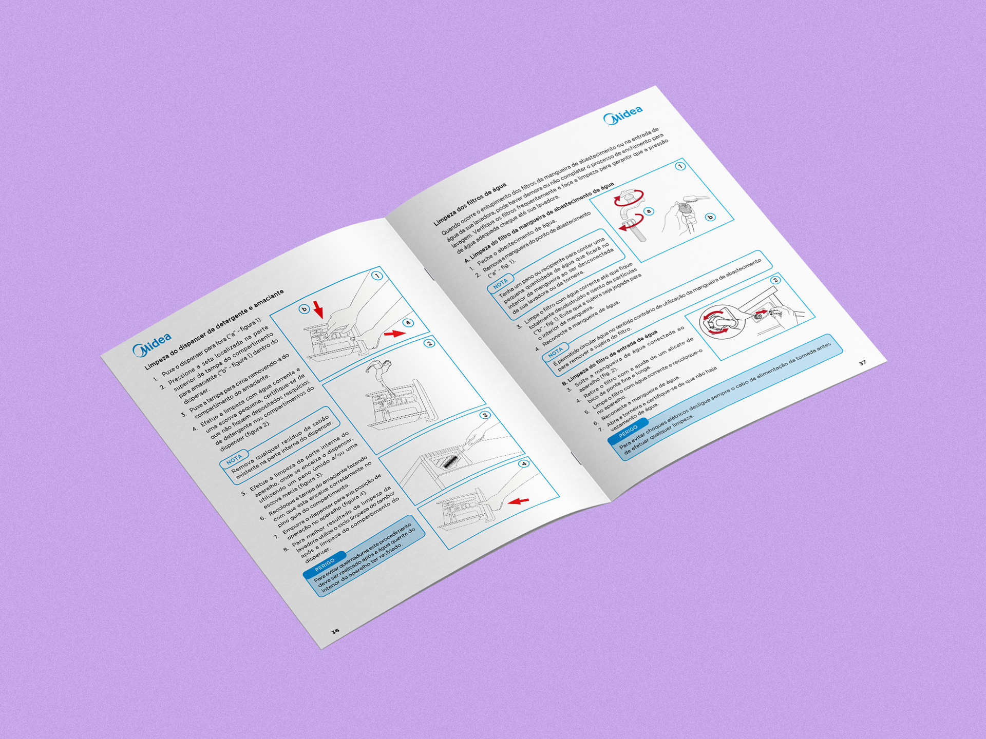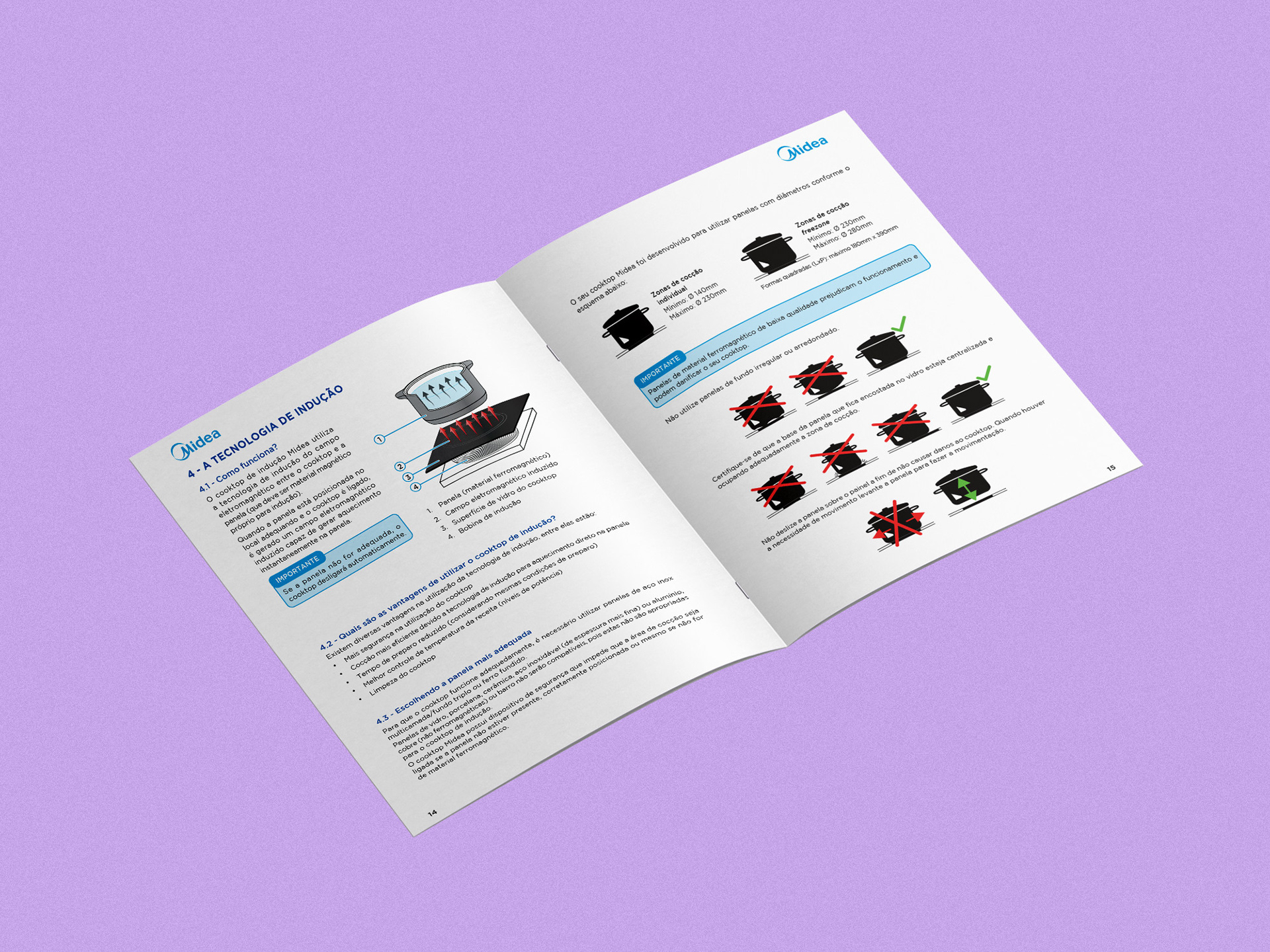 Diagramação para manual do usuário dos produtos Midea (2020-2025).