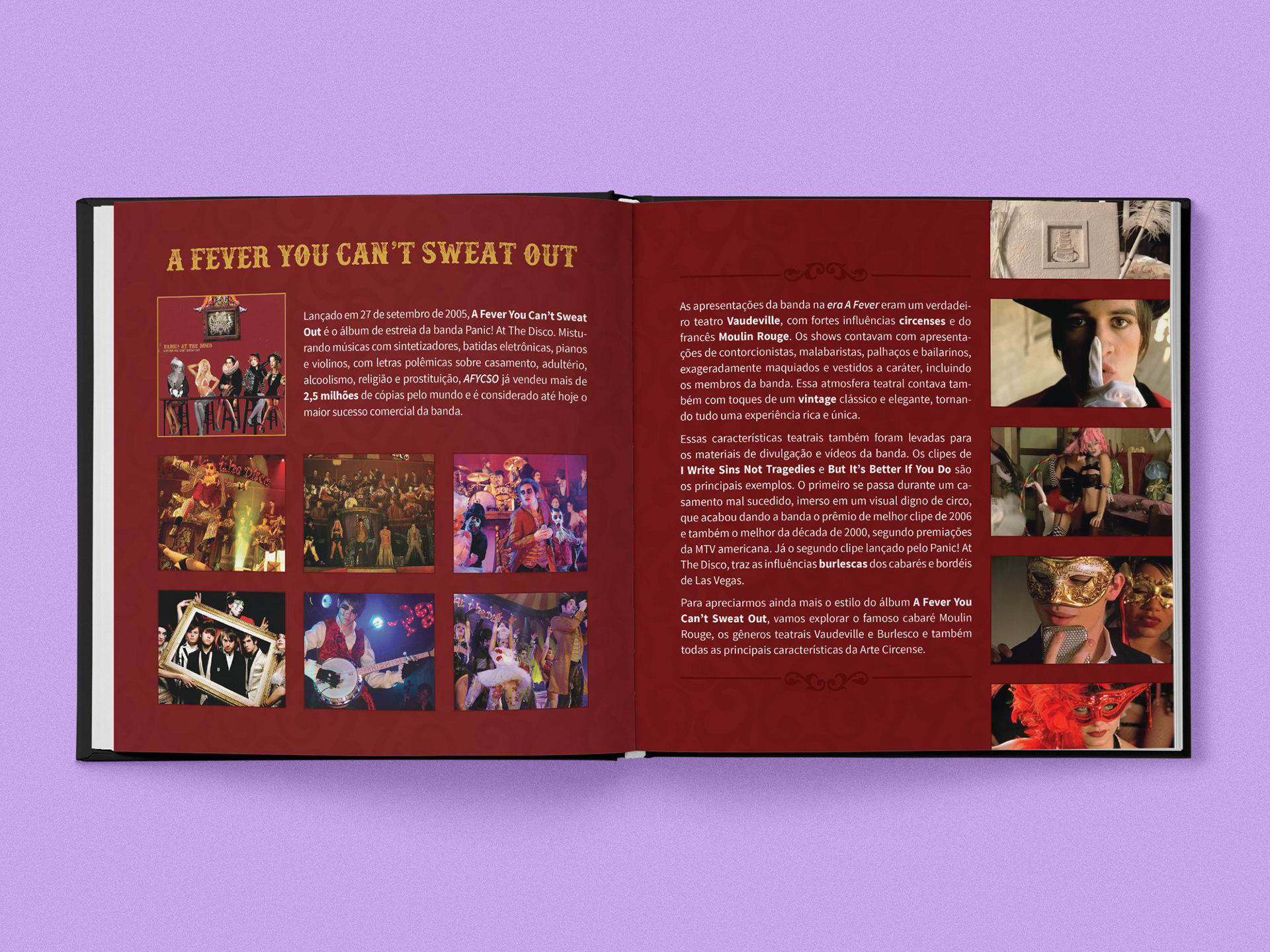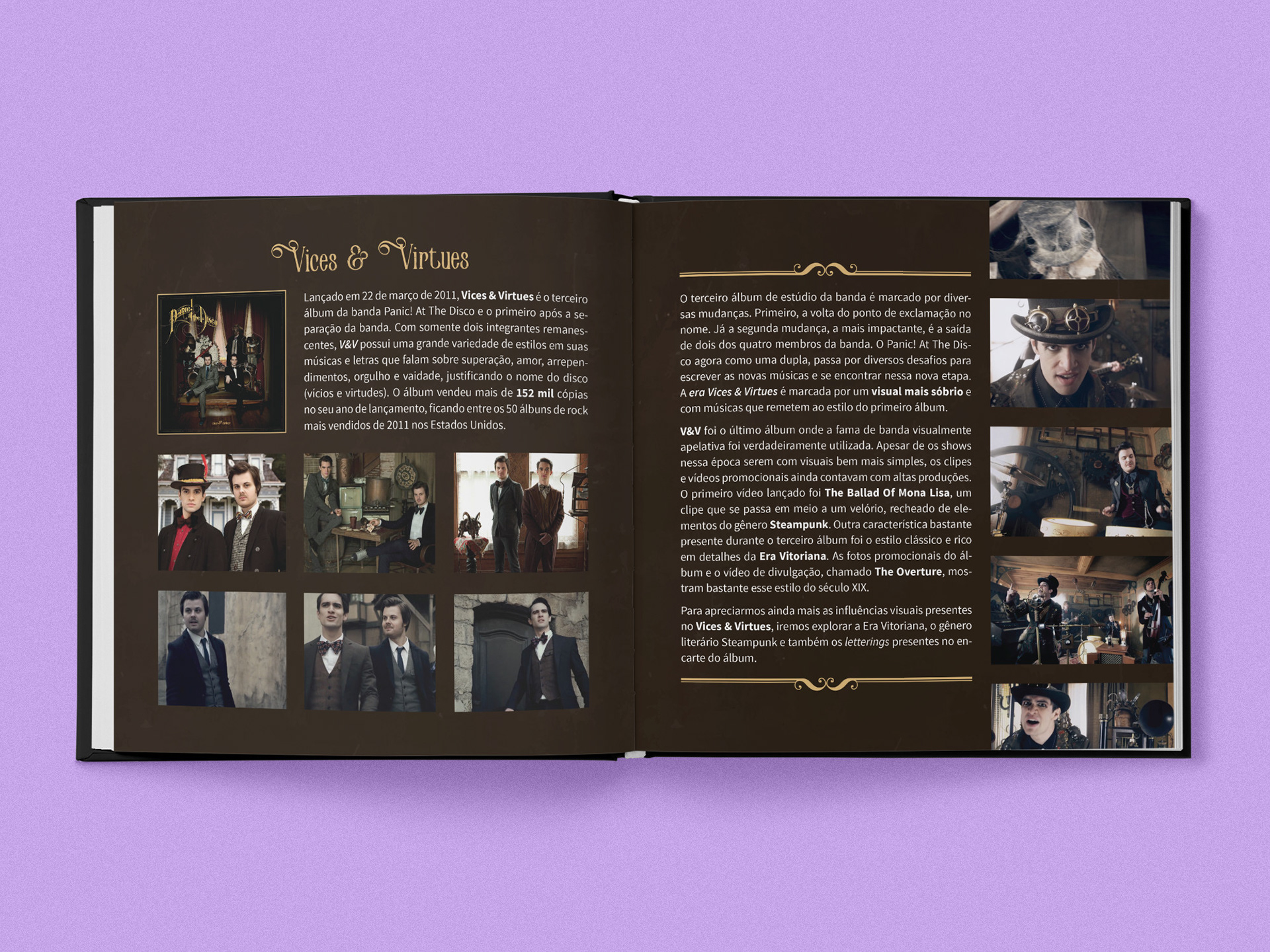 No livro é abordado as influências de estilo e design que a banda americana Panic! At The Disco utilizou nos seus três primeiros álbuns. O público-alvo desse projeto são os fãs de Panic!, principalmente aqueles que gostam dessa fase inicial da banda e possuem interesse em saber mais sobre movimentos artísticos e históricos.